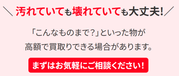 出張買取プラス富士沼津店では、汚れや破損がある品物でも査定の対象としています。