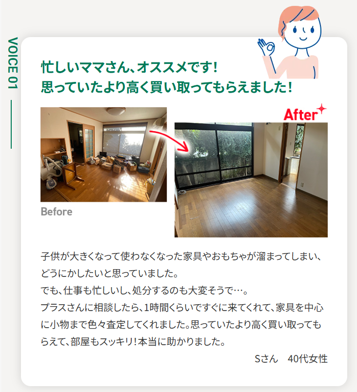 出張買取プラスの公式サイトでは、買取前後の部屋の写真が掲載されています。